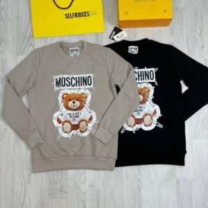 Moschino Teddy Printed Jumpers Safety Pin In Black & Beige Colors