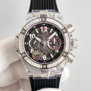 Hublot Big Bang Unico Sapphire Diamond Bezel Watch with Black Rubber Strap