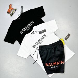 Balmain Paris Shorts Flocked Balmain T-Shirt Sets In Black & Blue Colors
