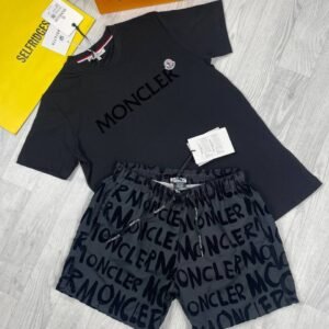 Moncler Men’s Replica T-shirt Short Set Logo Print Black White T-shirts Shorts Sets Reps Half Sleeve Cotton Fake Tshirts Round Neck First Copy Men T Shirts Cheap Tshirt Rep Boys Tee Shirt Sale UK