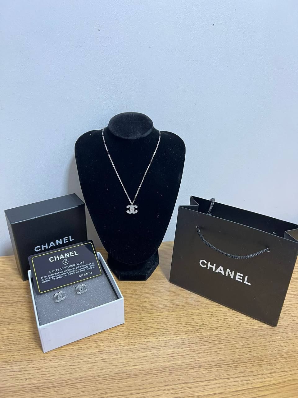 Chanel CC Crystal Necklace & Earrings Silver Tone For Women