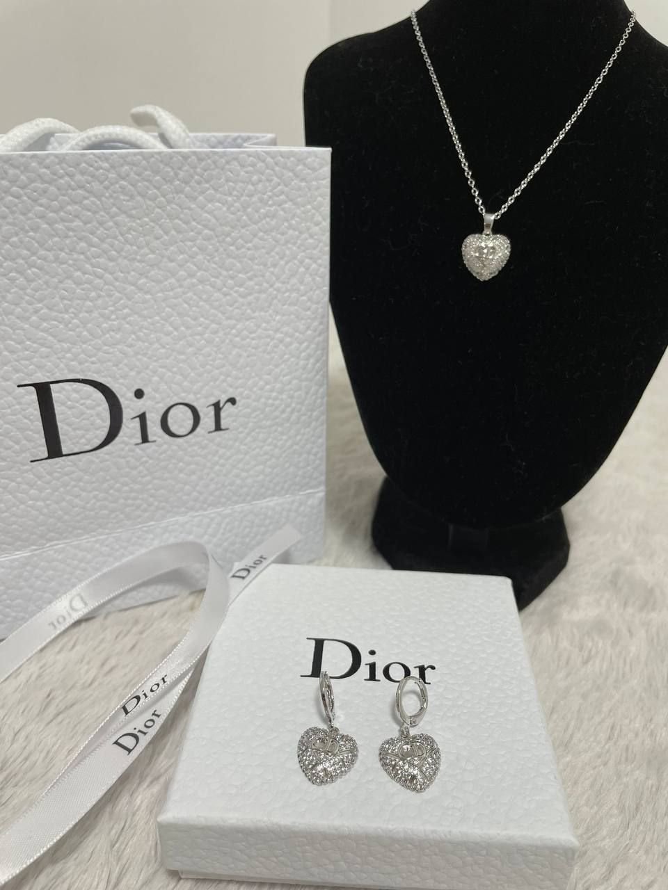 Christian Dior Silver Heart Necklace & Earrings For Women