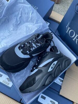 Christian Dior Trainer b22 Sneakers Black and White Reflective Runners Blue Silver Diors Rep Trainers