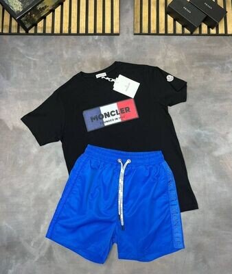 Moncler Men’s Replica T-shirt Short Set Tricolor Logo Black White Bue T-shirts Shorts Sets Rep Tshirts Cheap Men Half Sleeve First Copy Boy Cotton T Shirt Fake Tshirt Reps Tee Shirts Sale UK