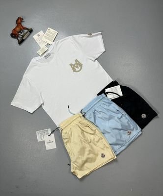 Moncler Shorts T-shirt Set Black Beige Turquoise