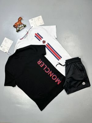 Moncler Stripe T-Shirts Shorts Set Black White Sale UK