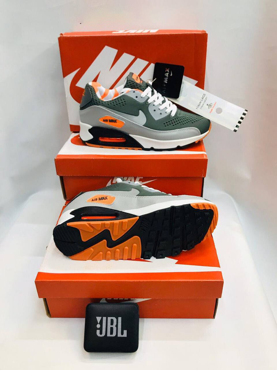 Nike Air Max 90 Tweed Dark Army Black Orange Blaze Grey Men’s Sneakers