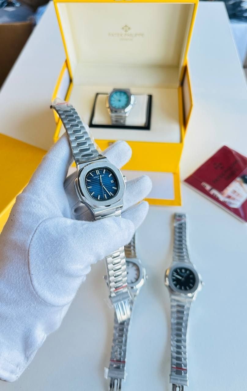 Patek Philippe Nautilus Men’s Watch Analog Display and Metal Strap Navy Blue Dial
