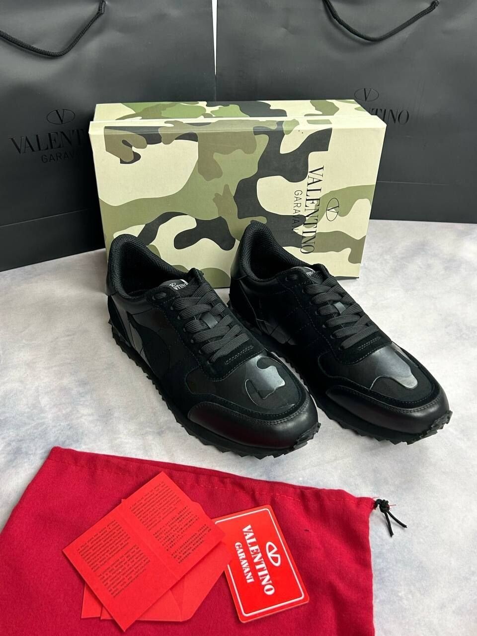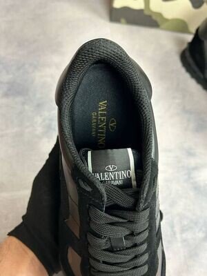 Valentino Camouflage Noir Rockrunner Sneaker In Triple Black