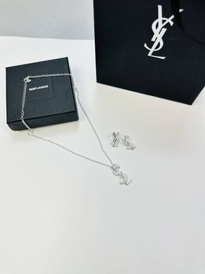 YSL Saint Laurent Titanium Steel Necklace & Earrings For Women